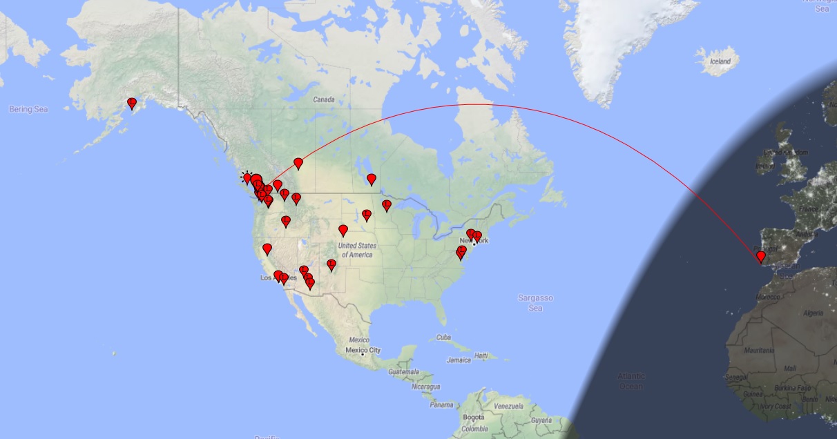 It was just a short excursion, as the eastern stations were working Europeans and all of the VE4 beacons were very loud back here on the coast. The possibilities of a link to the European path kept my excursion to only 10 minutes but sure enough, there it was on my WSJT-X list of decodes .... several CQs from CT7ANG in Portugal! My laptop could barely stop giggling. This would have been the first PNW-EU QSO of the summer had I been maintaining vigilance.l!