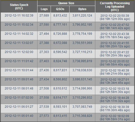Logbook of The World Web Page Now Features Daily and Hourly Status Updates: The ARRL has created a new informational page to issue daily status updates and information of interest to the Logbook of The World (LoTW) user community. These updates will include planned downtime and changes that will impact LoTW operations. In addition, LoTW’s processing queue is now updated hourly, telling how many logs and QSOs have been uploaded to the LoTW system and are awaiting processing. New hardware that will improve LoTW’s throughput is on order and is expected to be running in six to eight weeks.