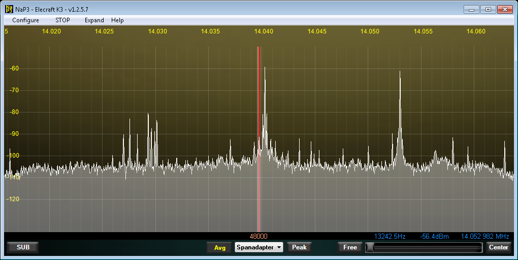 In mid November I sold my Kenwood TS-590 to finance the purchase of an Elecraft KX3 and become a full time QRP operator. One of the advantages of the KX3 is SDR I/Q output, which can be used to drive a panadapter. After some fidling around, I have a configuration that works with the popular NaP3 software and thought I would share the highlights in hope of saving you some effort. This is by no means an exhaustive setup and configuration guide for NaP3, but it should be enough to get you started. Remember you can click on the images to enlarge them.