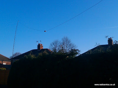 The resulting antenna seems to perform well, but it does sag a little due to the weight of the trap and wire and the flimsiness of the pole. But I have made a number of contacts on it and used it during the RSGB 80m CC Datamode contest a few weeks back. It was my first go at this contest but once I got the hang of operating it was great fun.