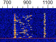 Using JT9 would allow 10 times the number of stations to fit into the present JT-window ... that's 100 JT9 stations instead of 10! With JT65, the window fills-up quickly and the QRM can soon take its toll with the usual ear-splitting strength of Es signals.The waterfall below shows the much narrower, more sensitive JT9 mode on the right compared with the wider JT65 signal on the left.