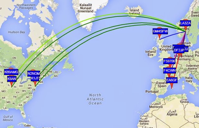 My 0.1 W 21 MHz WSPR transmitter regularly makes it over the Atlantic, but never before to K1JT. The SWR was something like 7:1, but apparently that works fine, both for the transmitter and for radiation.
