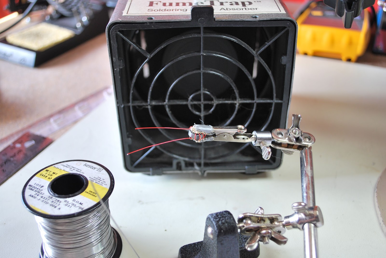 4. Use two sizes of soldering tip's one (I use the Weller ETC 1/8 tip) for the solder blob used to melt the insulation off the wire. Then a thinner tip (I use the Weller ETR 1/16 tip) for soldering the toroid to the board.