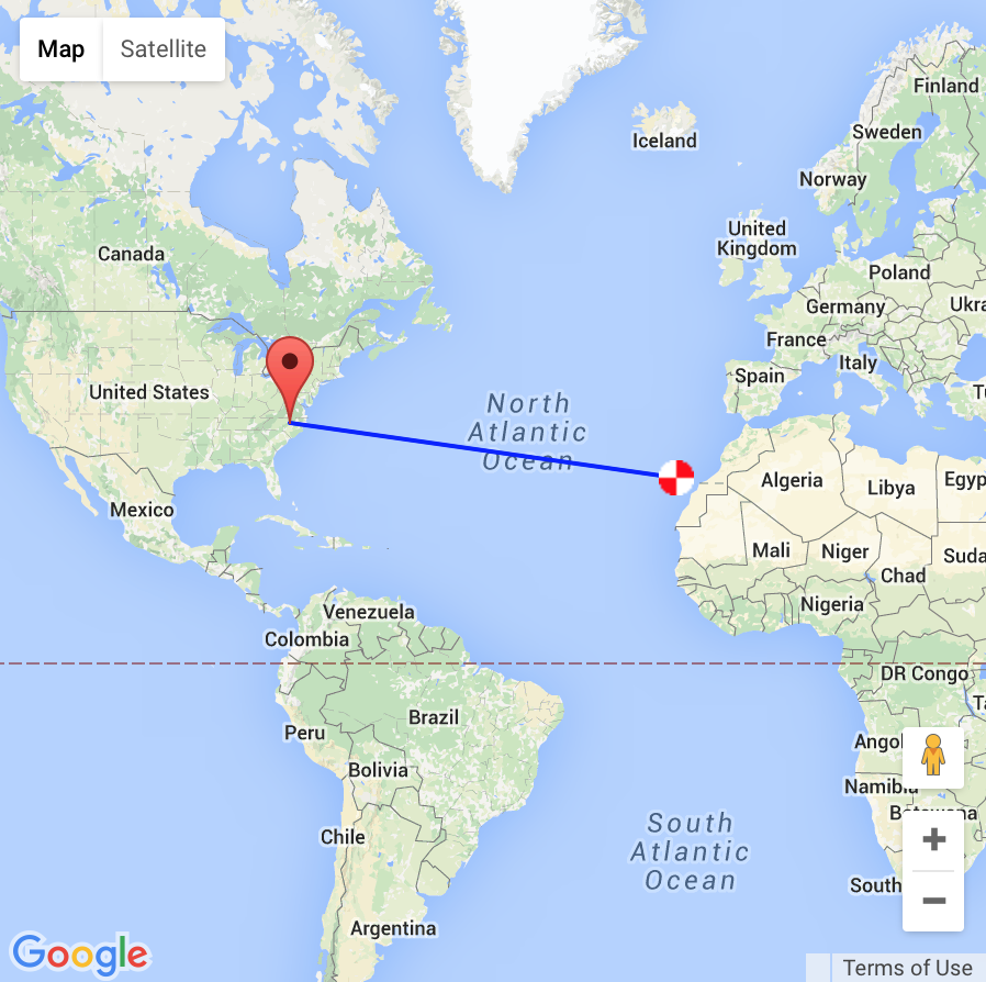 | Path from N4PBQ to EA8TL in the Canary Islands |