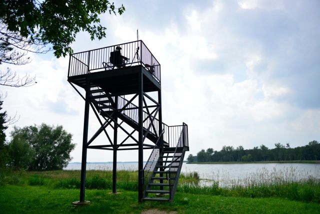 deer flies!!! We did have bug repellant but it just had no affect on them at all. I was not bothered but poor Julie had at least 10-15 buzzing around her head all the time....and biting her!! We turned around and decided to call it a day, on the way out we noticed a path and this path lead to a lookout about 3 stories high. We went up to have a look and low and behold no deer flies. We had our lunch up there and Julie was able to take pictures and I was able to have to some radio time.