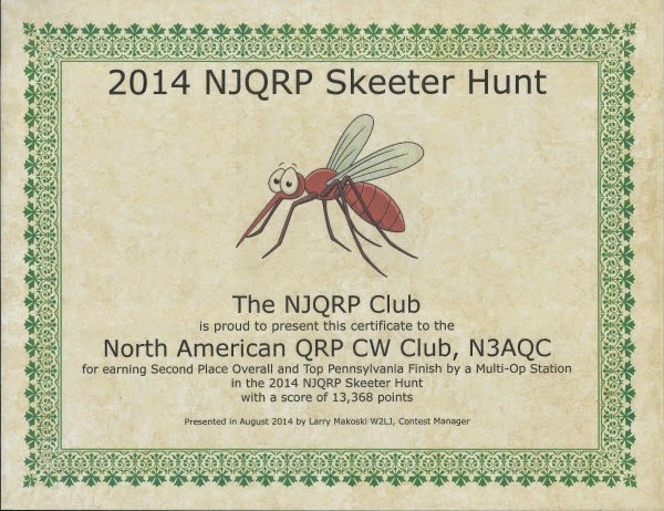 I am having a bit of trouble with the QSL.NET webpage, so for all the details of this year's Skeeter Hunt, you can go to my Skeeter Hunt page of this blog - http://w2lj.blogspot.com/p/njqrp-skeeter-hunt.html.