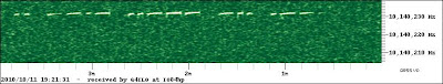 If my initial experience is anything to go by, this personalized way of sending signal reports makes for a very friendly aspect to the hobby. I sent this capture (above) of a beacon from IQ2DP with an emailed report. This morning I received a nice reply from Teo I2RIT thanking me for the report and telling me all about the beacon, which is made from junk box parts and runs well under 100mW into a ground plane made of scrap aluminium tubing. He also sent a link to an article about it. The article is in Italian but here is a translation. If you’ve read this far then you will probably find it interesting. Yet another facet to our amazingly varied radio hobby.