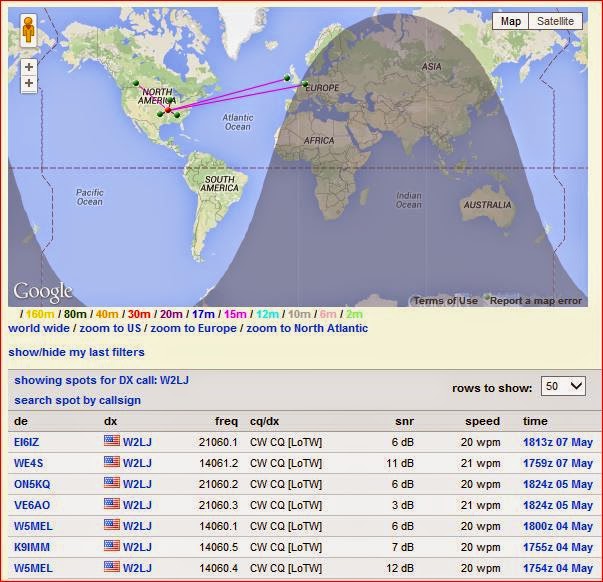 I worked YN5SU in Nicaragua and OT4A in Belgium, and that was it. I called CQ for a bit and had no takers. But I was getting out, according to RBN: