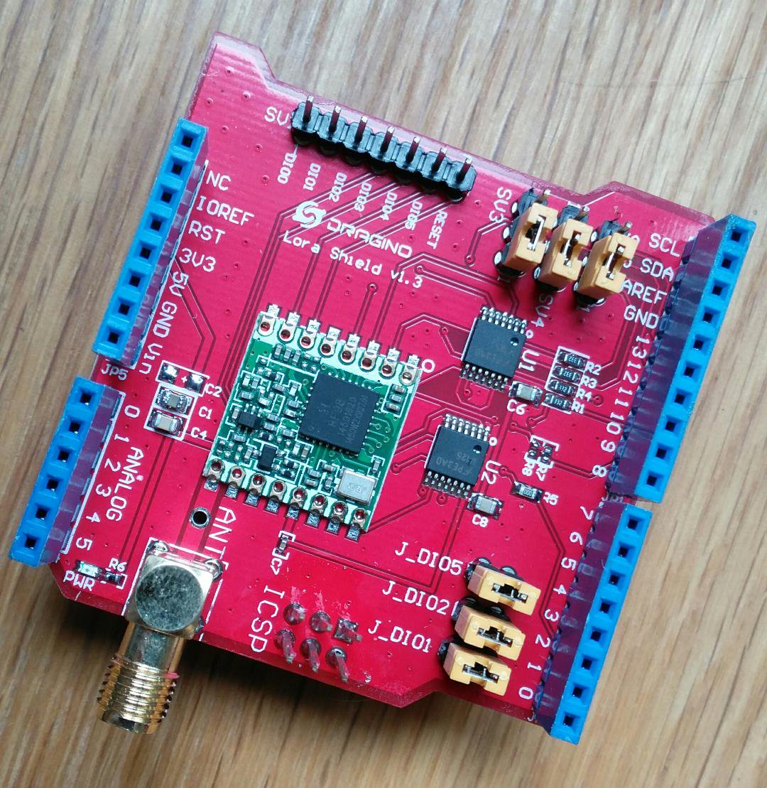 Most of the current LoRa development in the HAB community has tended to be on the Raspberry Pi due to the use with SSDV and the easy availability of cameras and ready built kit. LoRa is of course available on the Arduino platform and I had purchased a couple of 'Dragino' shields (pictured below) with a LoRa device on.