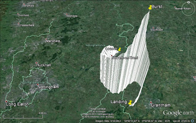 The flight can be seen visualised in Google Earth below and while the 26km altitude was impressive it was around 4km less than I'd planned.