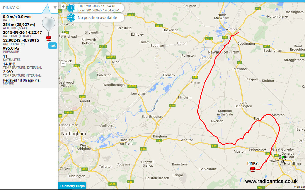 The National Hamfest high altitude balloon flew on Saturday and Pinky Pig reached a maximum altitude of nearly 26km (25,927m / 96,873 feet) as pictured above.