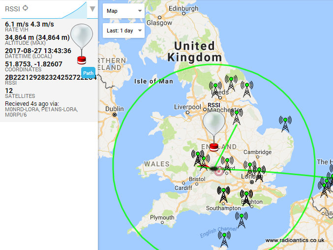 868MHz ISM devices are available but are not as widely used. Back in December I posted about trying to track a flight by HAB Enthusiast Dave Akerman who is experimenting using LoRa devices on this band. I had limited success receiving that flight and another ones so when I saw that Dave was planning another flight today using 868MHz LoRa I had a rethink on how to approach tracking it.