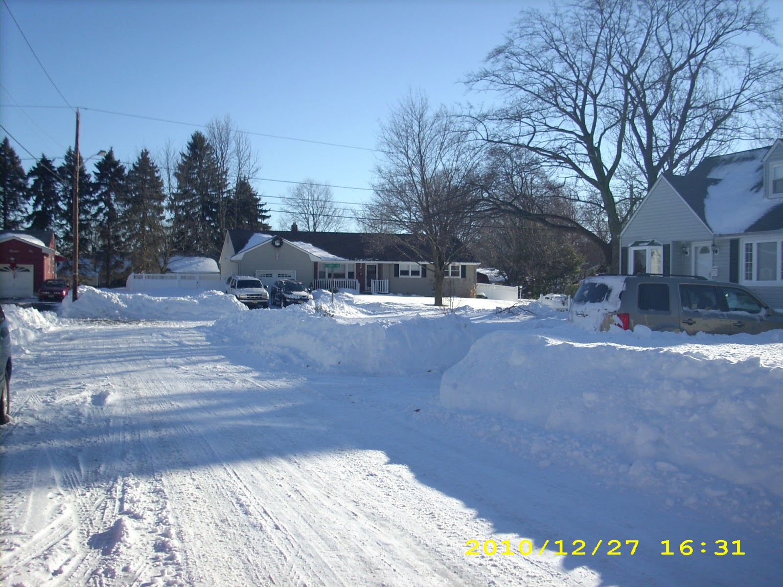 During the night, while I laid happily snoozing away, the storm did indeed move in a NorthEasterly direction. But at the same time, it was spinning in a counter clockwise direction, bringing around another bout of snow. So this is what I woke up to: