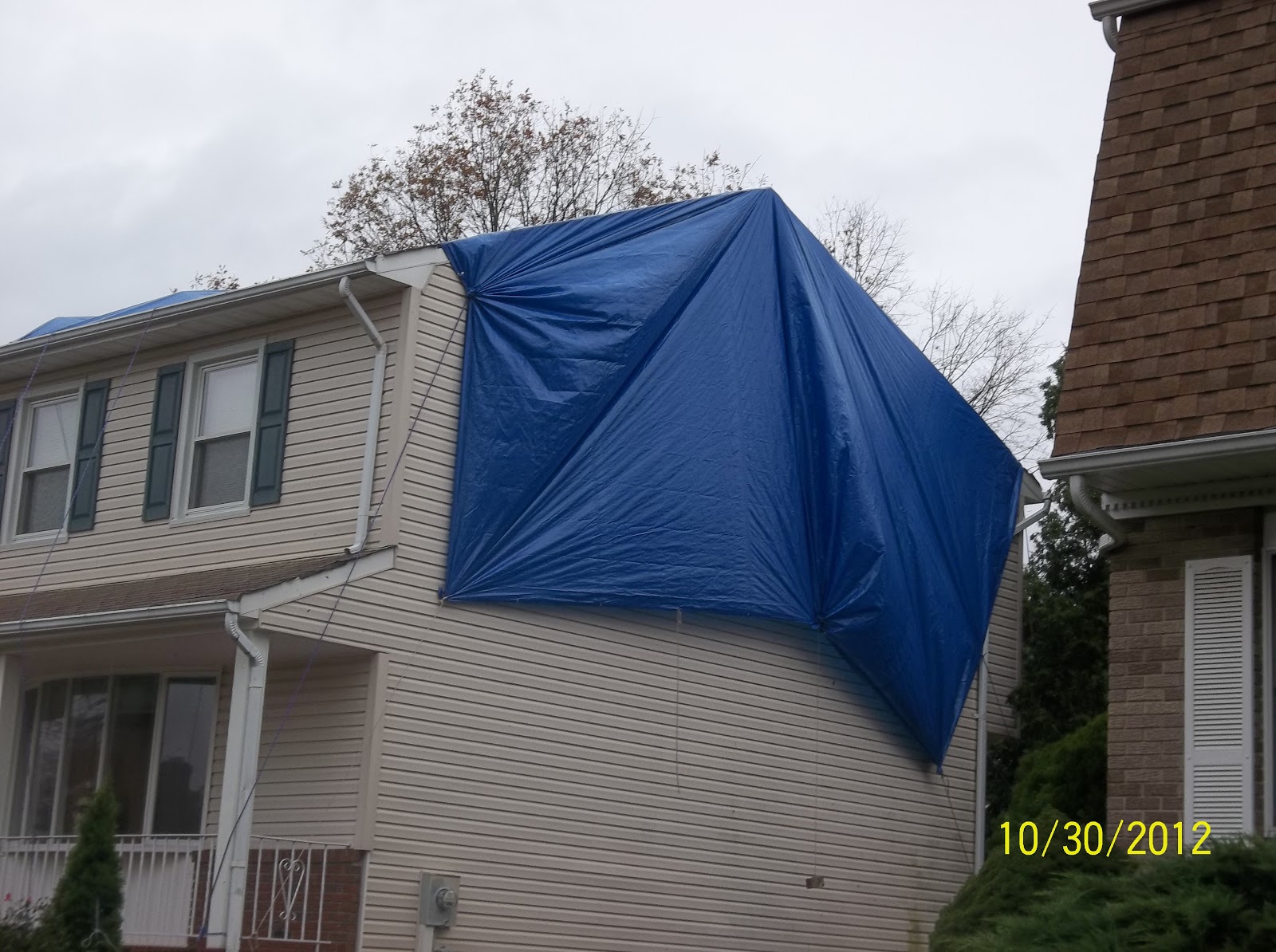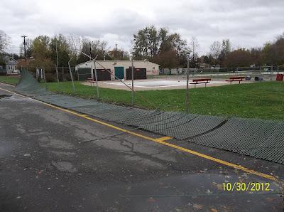 The garbage cans have been securely bungee corded to the fence. All Halloween decorations have been brought in. I also covered the grill and secured that in place with bungee cords.