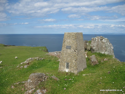 The Mull of Oa (TP4976) trig-point I actually walked to being next to the American Monument which commemorates the loss of two troop ships in 1918, the Tuscania and the Otranto and the spectacular location overlooks the very spot where the Tuscania sunk. The monument built to thank the inhabitants of Islay for their help is built in the shape of a lighthouse and is visible from many areas on Islay. Despite the very wet ground conditions the walk was straightforward however the weather put paid to any attempt at activating. The wind was very very strong, as this short video demonstrates.