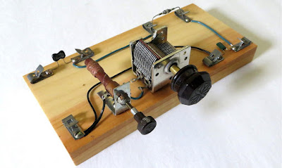 Crystal radios can be as simple as a 'single-tuned' set like this, built by Mike Simpson from plans shown in Alfred P. Morgan's "The Boys' Third Book of Radio and Electronics". Read the nice back-story from Mike about this project! In the right location and with a good antenna, even simple sets like this are capable of hearing skywave signals.
