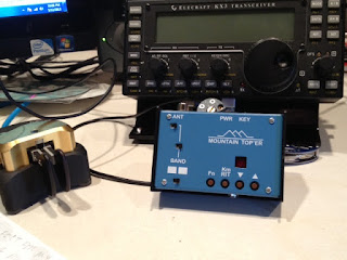 This week I also received from TJ, W0EA, my Mountain Top'er Rig, MTR, a KD1JV designed 2 band QRP radio. This is a SMD kit that I asked TJ to build for me since, at the time, I didn't really have any experience soldering SMD components. My MTR is set up for 40m/20m operation, CW only. It is very light and is well designed. I made my first QSO with W7WHO shortly after taking it out of the box. I look forward to using it on SOTA activations.