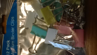 A visit to a discount stationary shop while I was in town, I came across a packet of medium sized binder clips. The sort you use for holding files of paper together and hanging up on a hook for reference. The clips came in a pack of twelve for 69p making the fix less than 6 pence!