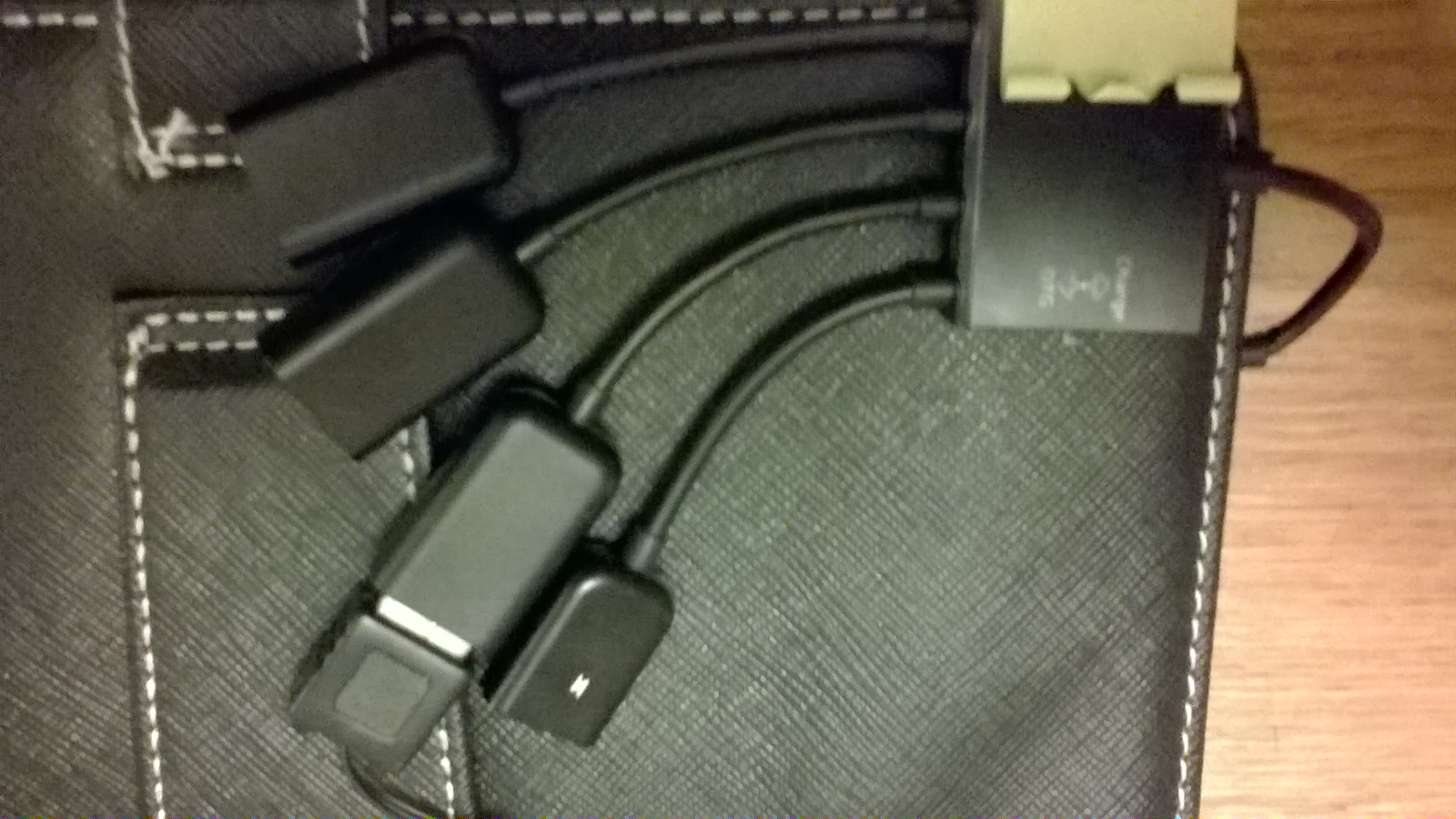 Steve: Its never going to end. As soon as one gets all the cables needed, the format changes. Your next device will have a USB 3 connector, or a micro USB 3, and that will give way to the USB C connector. That one really gets it down to 1 connector on the tablet — its the same connector for just about all devices from keyboards to monitors. You won’t have to use hubs either – devices daisy chain. One question I have — does a micro USB really save that much space over a mini USB? –Mike, WV2ZOW