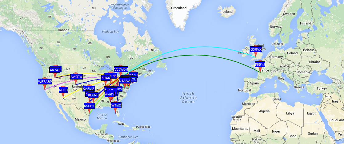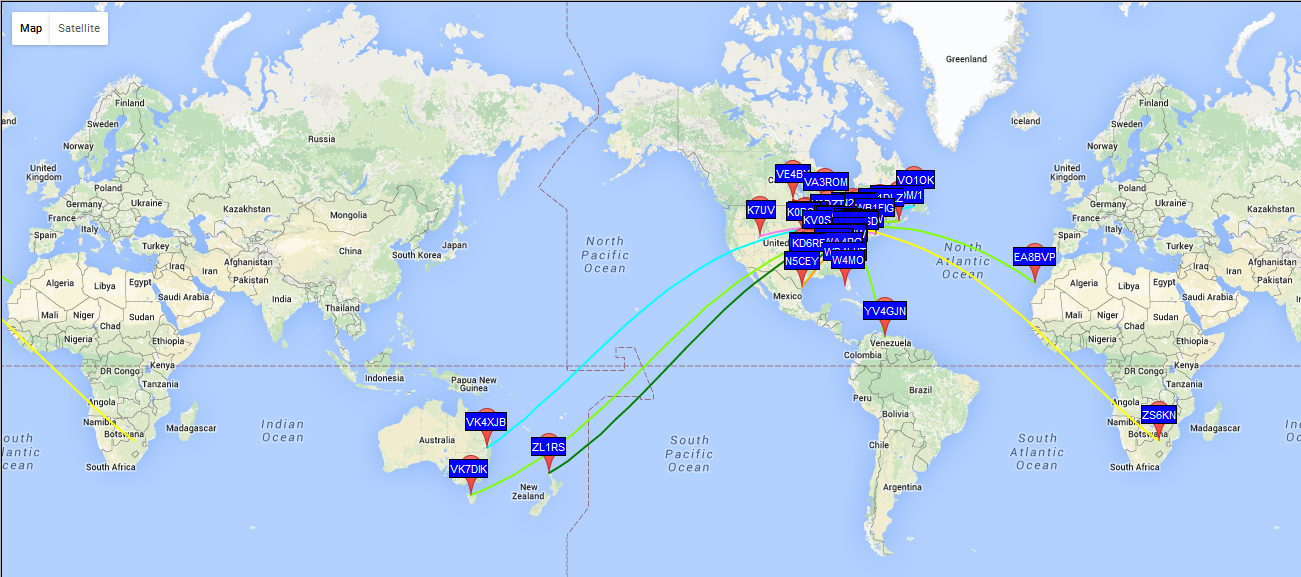 Over the holidays I was able to get some time to activate WSPR (at 5 watts) using WSJT-X version 1.6 the latest version which now includes WSPR. I wanted to investigate band activity with relation to UTC time from my QTH using my MFJ 1788 loop from the balcony. I started WSPRing on Dec 30th on bands I thought to be the "good" bands such as 15, 17 and 20m. From the UTC times of 1600 to 2200 I netted zero results on these bands!! It could had been due to poor propagation on these bands as I had very poor results. 30m was my best band of all the test bands for that day