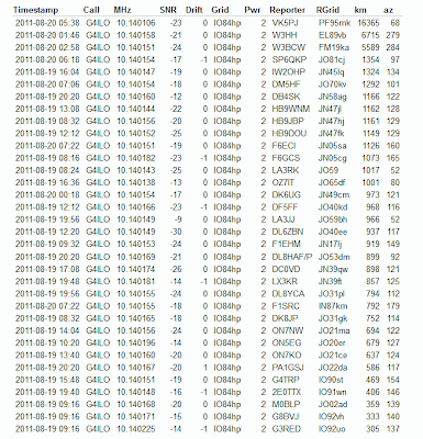 The amazing power of the WSPR mode to enable weak signals to be received over long distances was demonstrated conclusively when my 2 watt signals, transmitted into a 1.3m long telescopic whip antenna from inside the G4ILO shack,were received in Australia and the USA, not once but several times with SNR reports of up to -19dB.