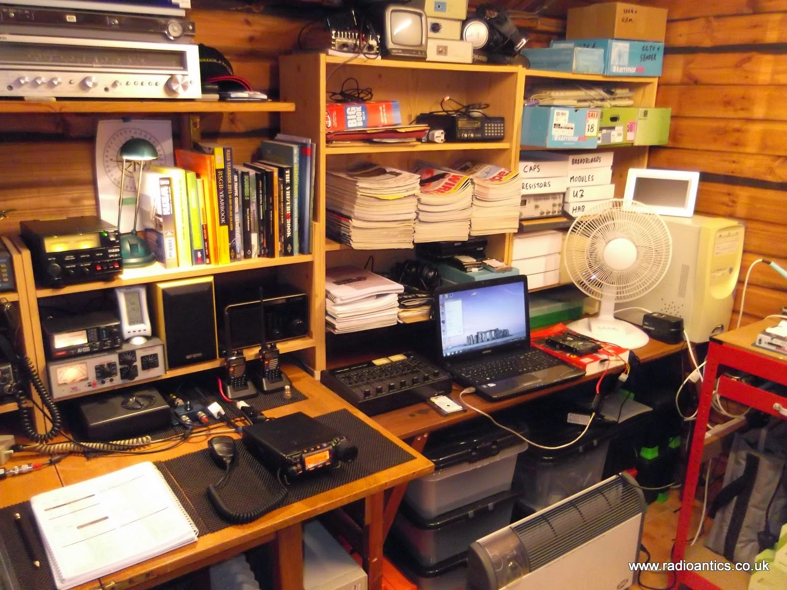 Hi Andrew, Really it looks like this is the time of the year for sorting out old stuff. I recently decided also to clean-up my shack and sold some items which I did not use for a while. Still some work to do – I urgently need to some more light. I like your arrangement with the Overhead lights – obviously you are not sitting in the dark.